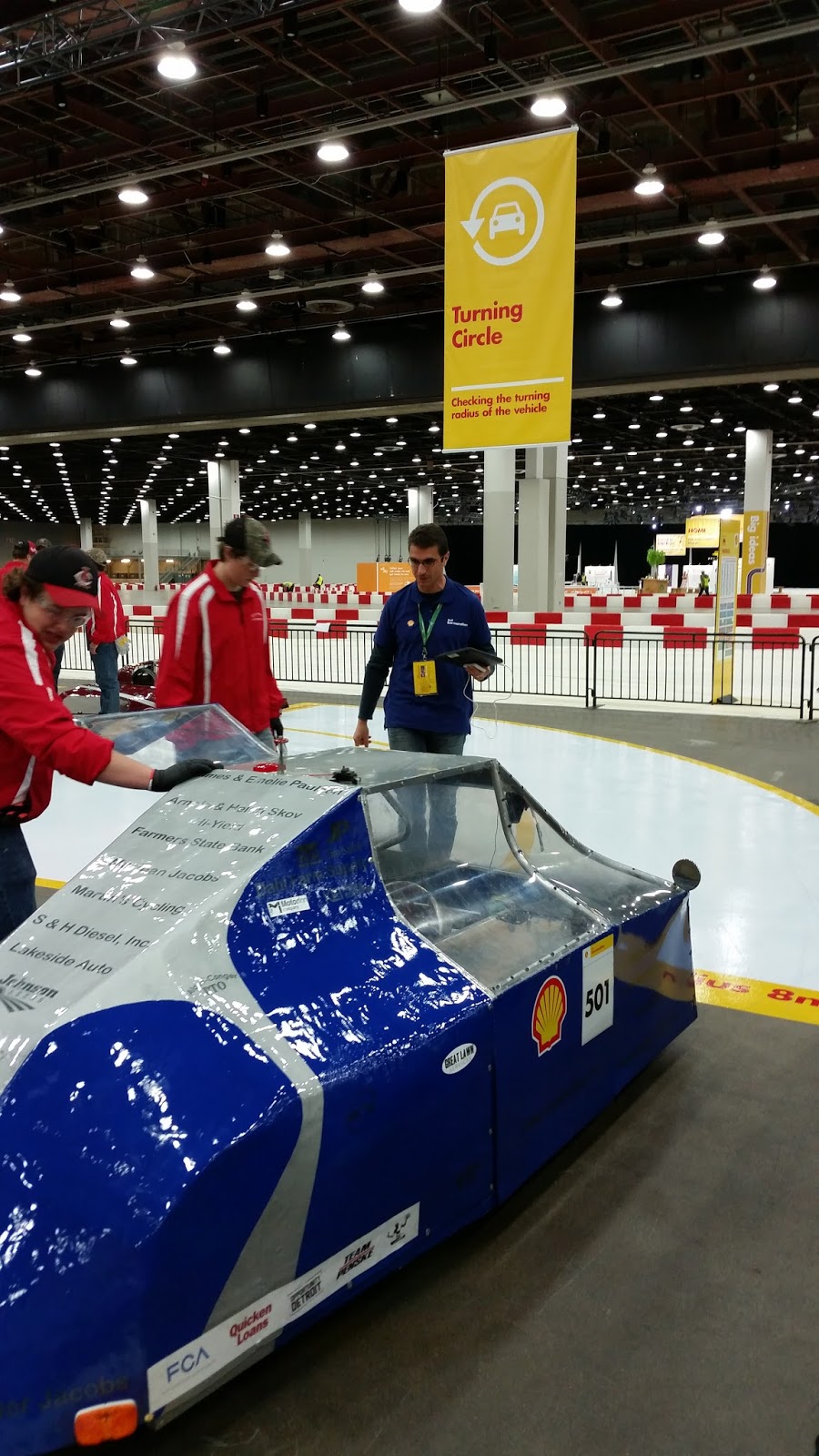 1/4 of a cm. They were able to restring the seat belts while waiting in line. So now they just need to fix the other 2 things. When Isaac did his "Time to Exit" part of the inspection, he was the fastest one out at 3.6 seconds (so far - there was still teams going through.)